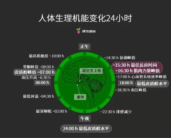 通過上面這張圖可以看出,人的體溫、血壓、睪酮等在一天之內(nèi)都在不停變化,這就決定了肌肉力量和激素水平,在一天之內(nèi)也會有很明顯的差異。