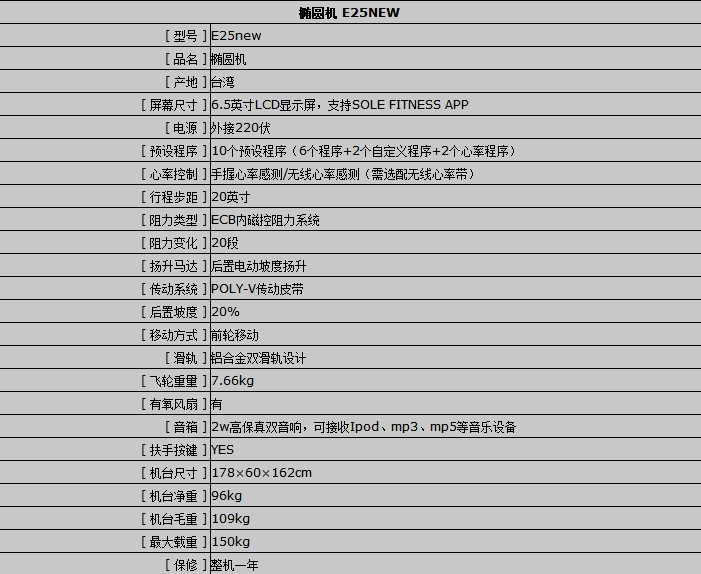 美國SOLE 速爾E25NEW橢圓機(jī)