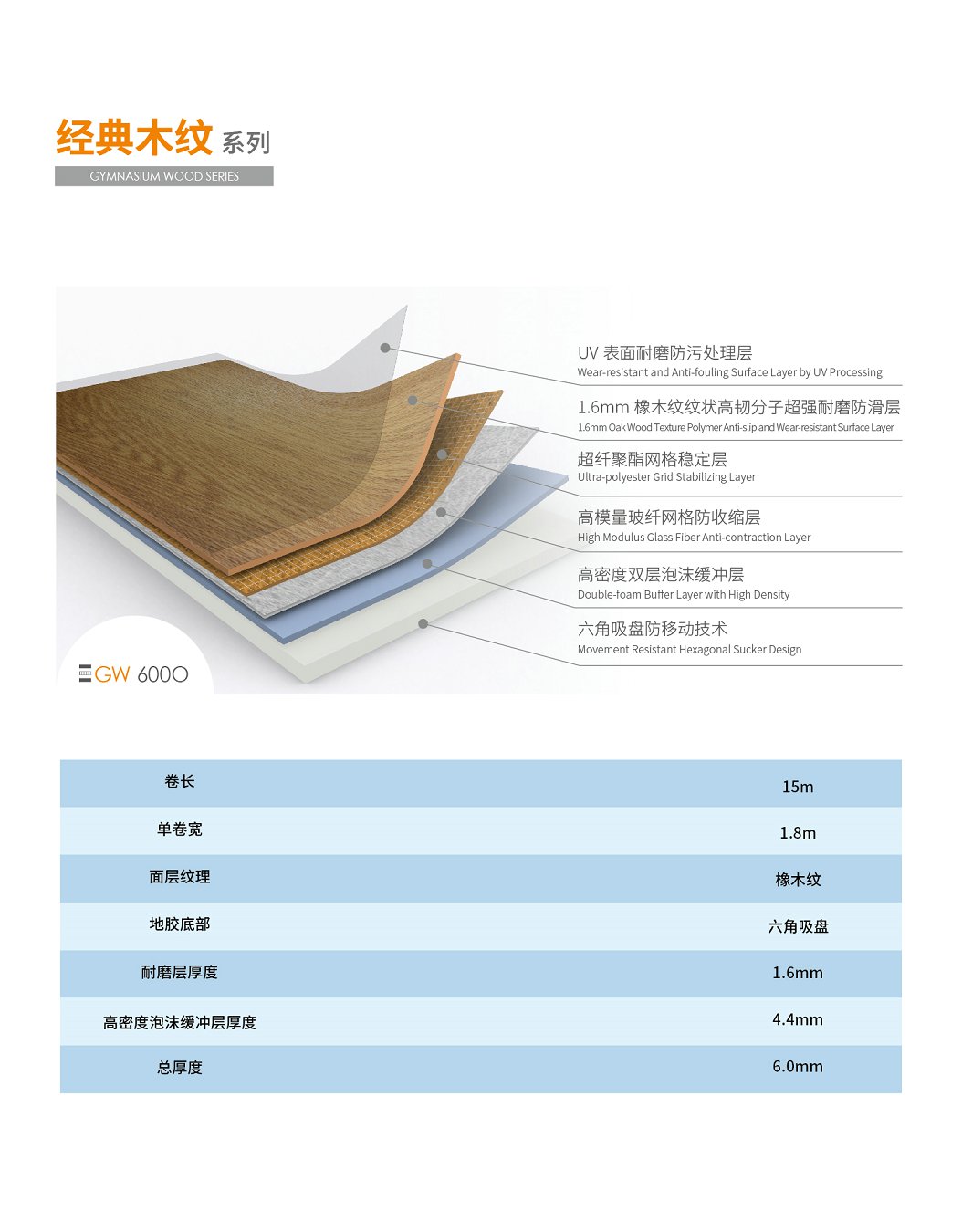 天速綜合地膠籃球場地膠經(jīng)典木紋系列GW 600O橡木紋