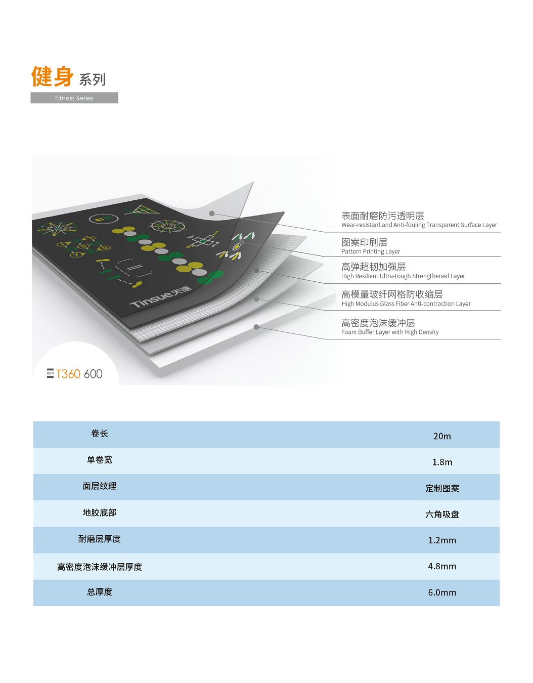 - 上一個(gè)產(chǎn)品:天速健身房地膠T360 450C定制 圖案