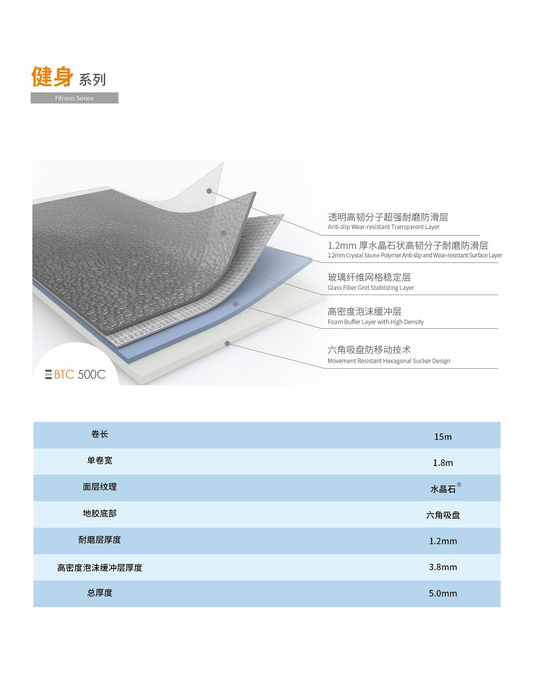 天速健身房地膠GB BTC 500C炭木灰