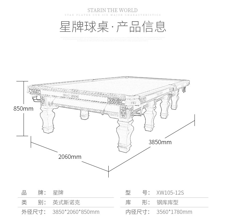 - 星牌 XW107-12S 英式斯諾克臺(tái)球桌